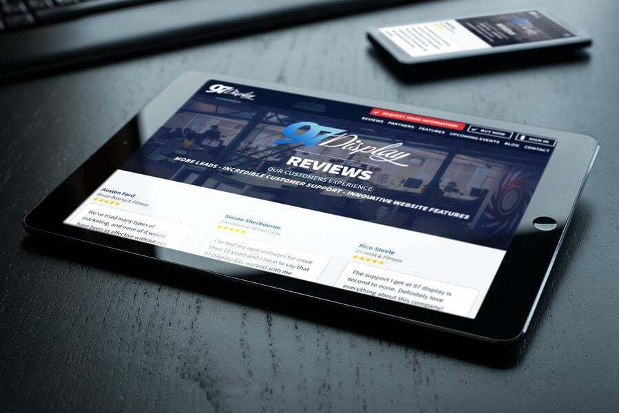 If your business currently uses a 97Display website, you have a head start because reviews from your clients are given a prominent position on all of our themes.